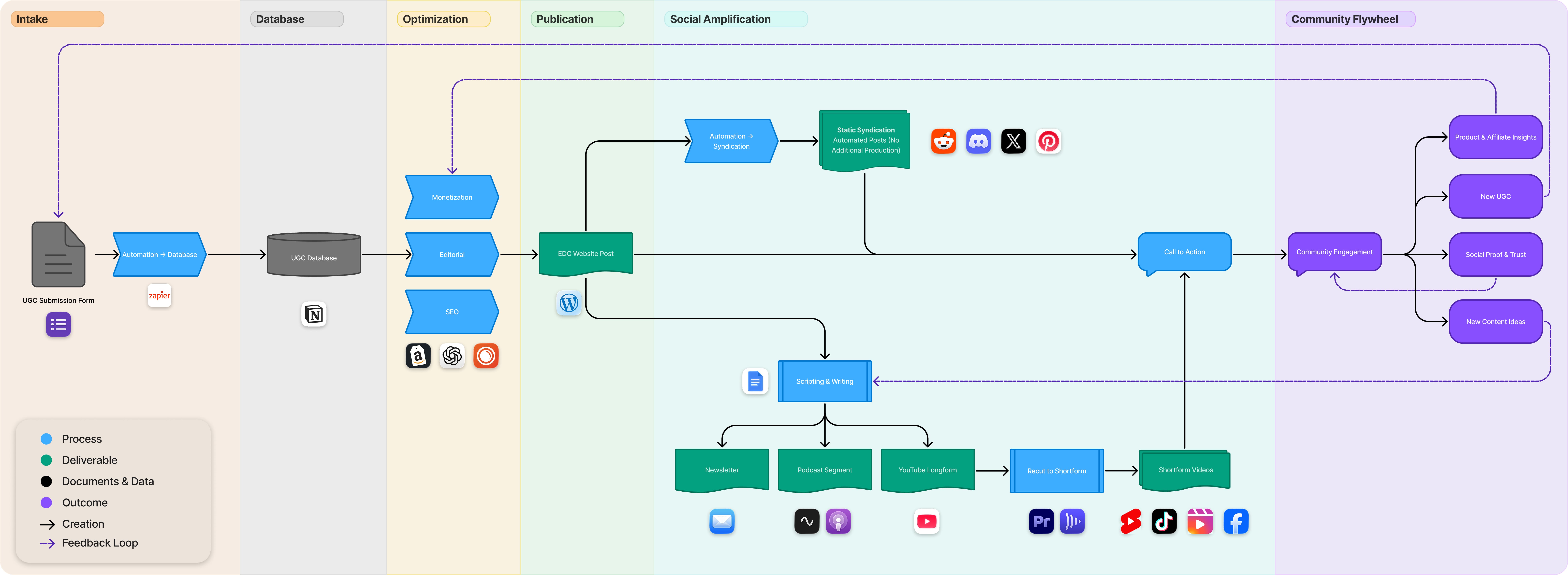 How I designed a five-stage product discovery and distribution system that turned community-generated content into a scalable engine for audience growth and affiliate revenue at EverydayCarry.com.