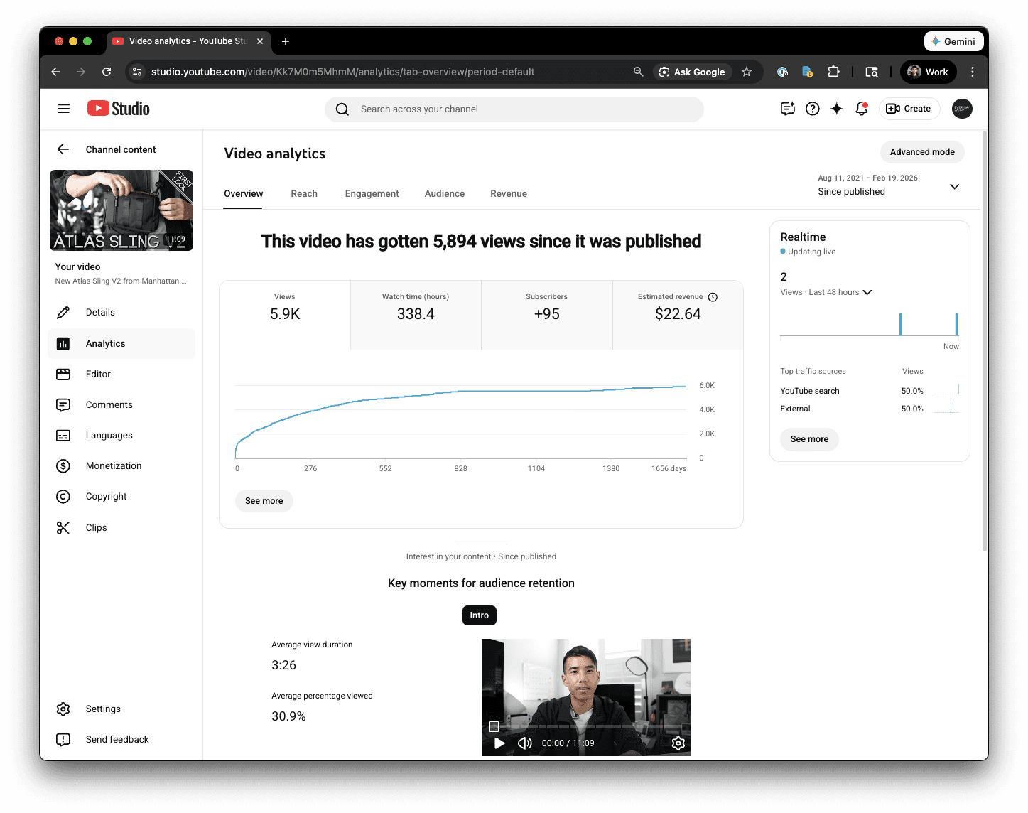 V2 longform review (5.9K views, 338 hrs watch time, 50% YouTube Search)