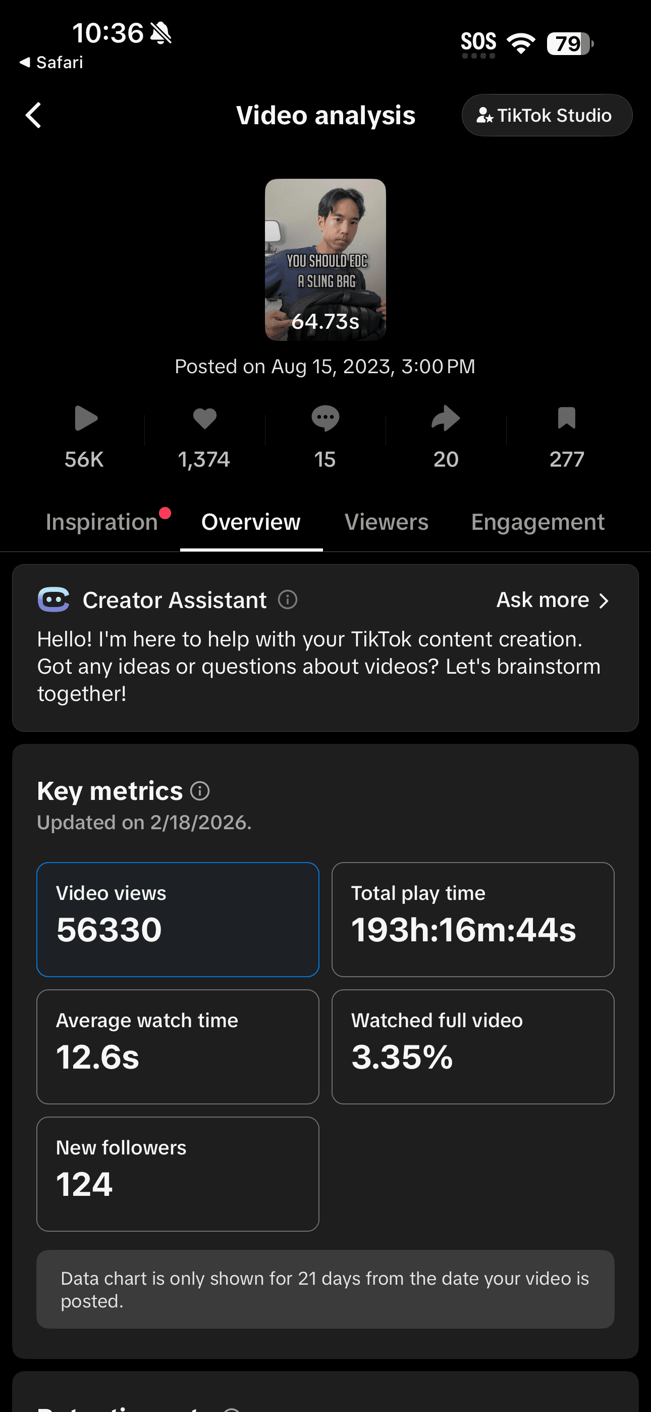 The V2 longform review generated 338 hours of watch time with an average view duration of 3:26, reinforcing the product education approach that was driving the sales velocity.