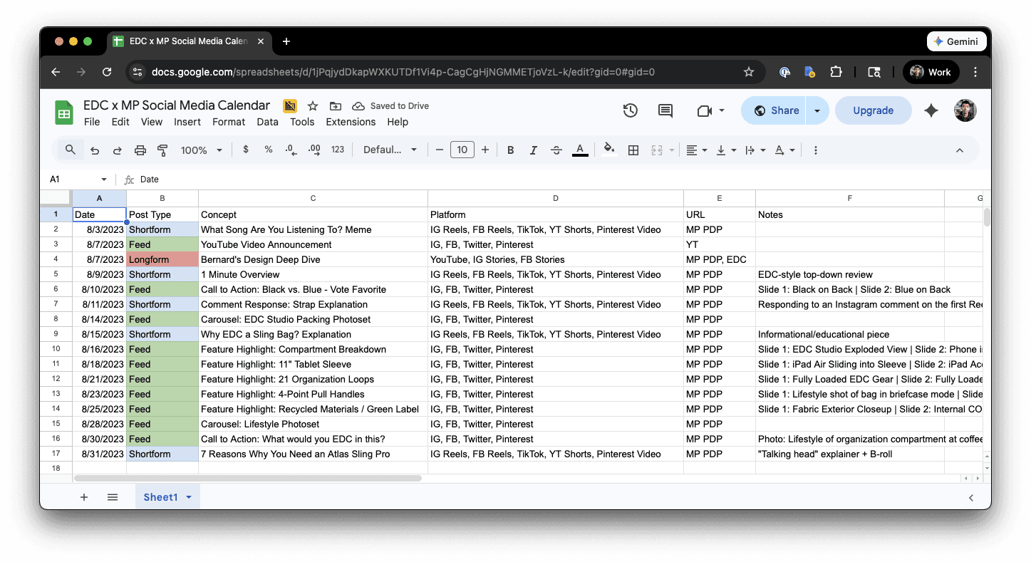 The content scope matched the ambition: 13 posts across TikTok and Instagram in a single month, a longform YouTube review, creator seeding with tight briefs, and PDP assets written for the retail page. I was also on-camera talent for MP's own content while continuing to run EDC's owned content in parallel.