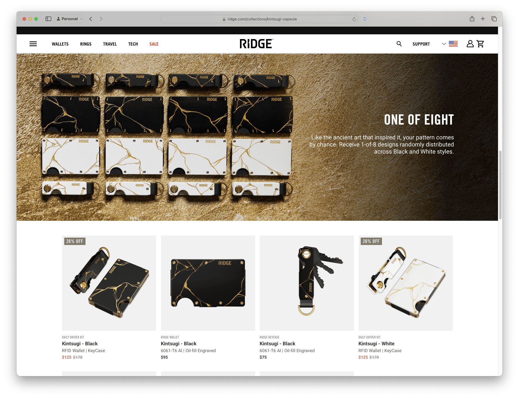 The power banks launched in late March 2025. My first Ridge wallet design I concepted and positioned, the Kintsugi collection launched as an instant classic on April 1st, 2025. Just a few days later, on April 3rd, I got laid off. I think Ridge had to respond to the new tariffs on trade policies that directly and significantly impacted their business model.