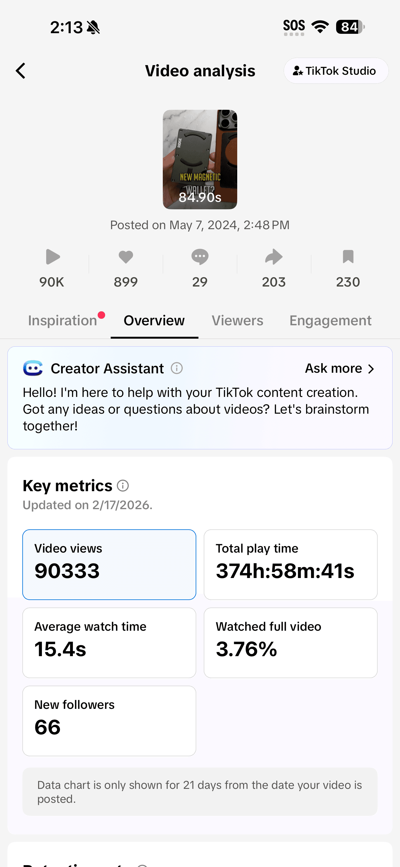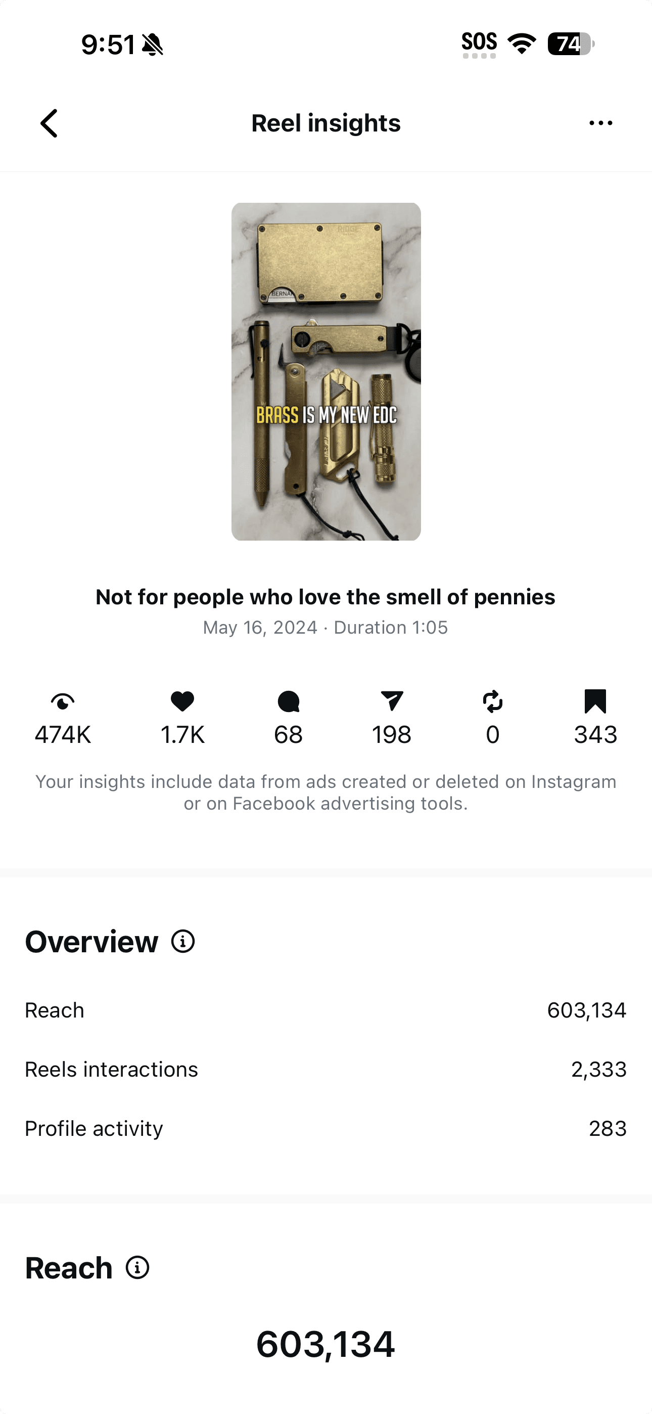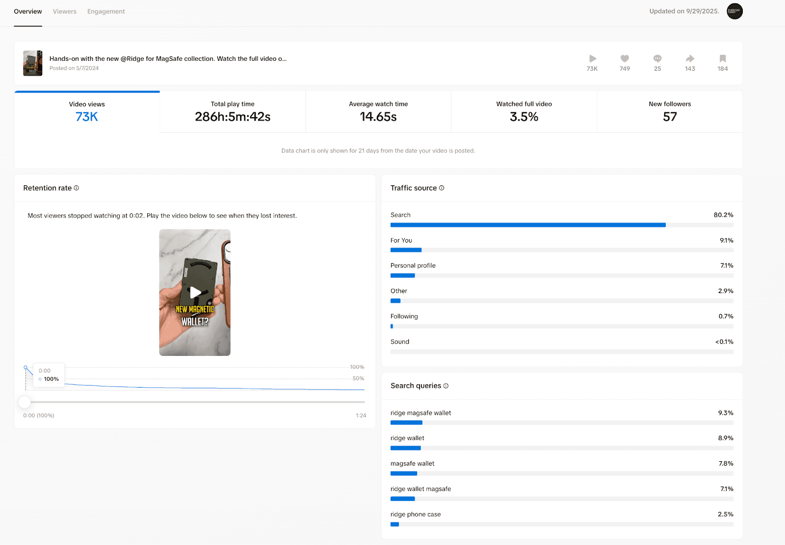 The TikTok post got 75,000 views. 80.5% of that traffic came from Search, not the For You page. That means people were actively looking for this product and finding it through EDC content. That’s a discovery signal—the content was functioning as product infrastructure, not just reach.