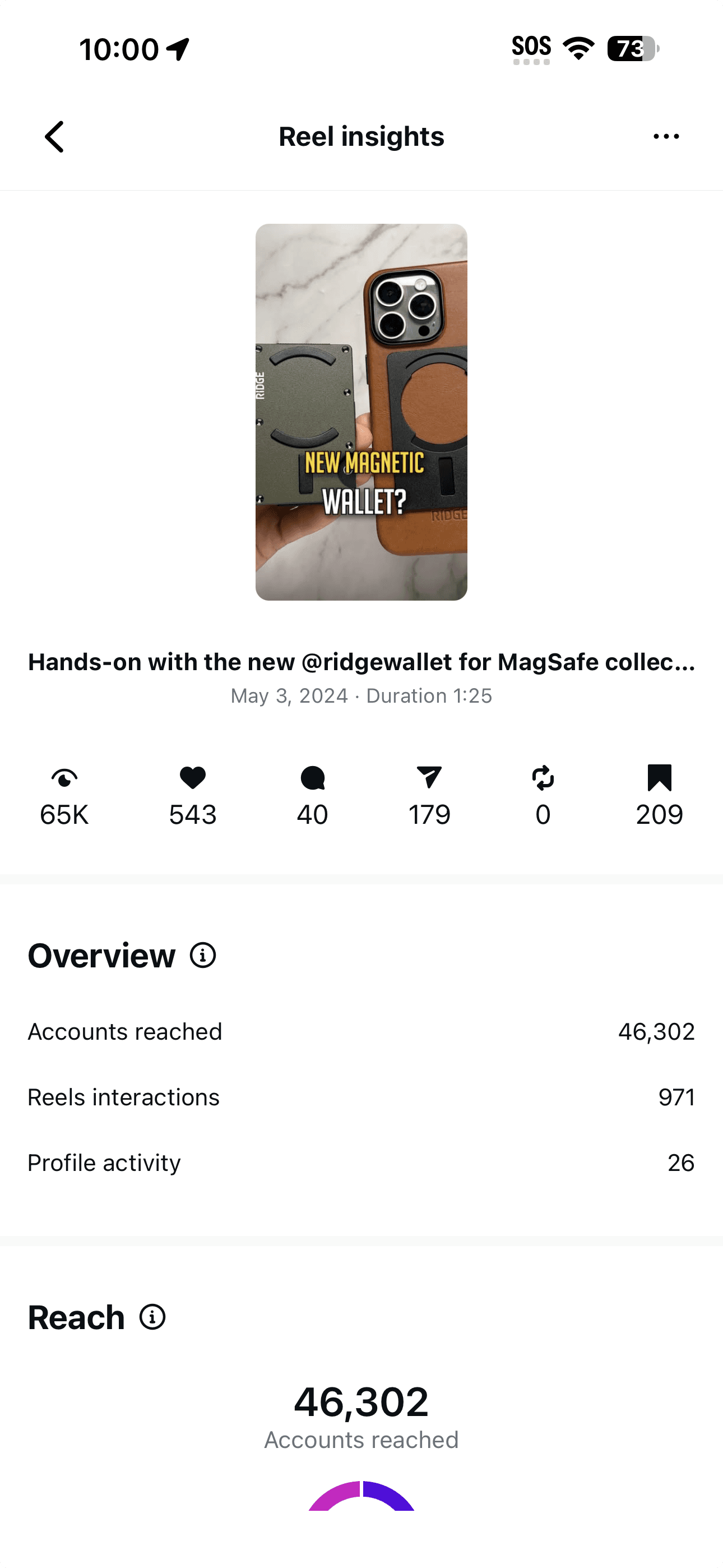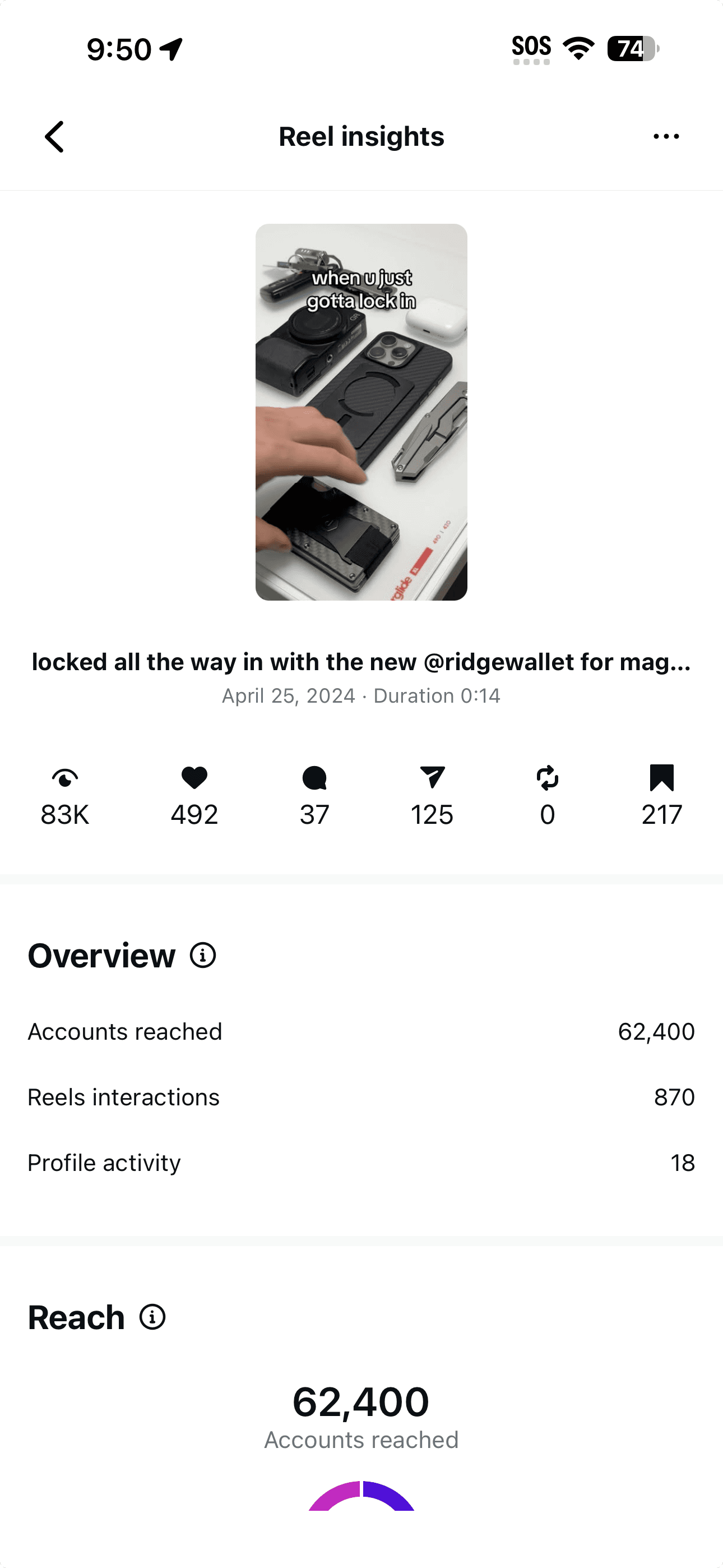 The YouTube review went live April 26, 2024. Two Instagram Reels followed in the same window, each with a different angle. Both were candidates for whitelisting as branded content from the EDC handle—meaning Ridge could amplify them through paid without breaking the trust the audience had in the source.